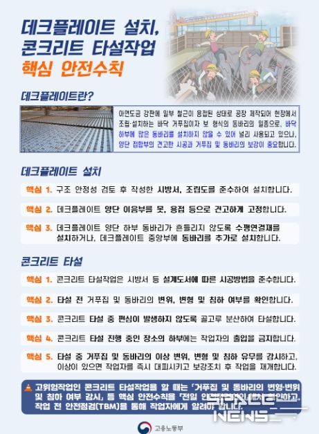 한편, 산업재해의 위험이 높은 건설현장의 콘크리트 타설, 지반굴착 등과 관련한 안전기준을 명확하게 정비하고, 작업현실에 맞게 구체적으로 규정했다.