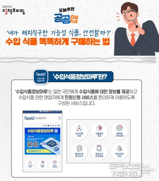 스페이스뉴스 스페이스뉴스 기자 | ‘내가 직구한 기능성식품이 혹시 위해식품은 아닐까?’ 궁금하다면 수입 식품 정보 조회 가능한 ‘수입식품정보마루’를 이용해 보세요.