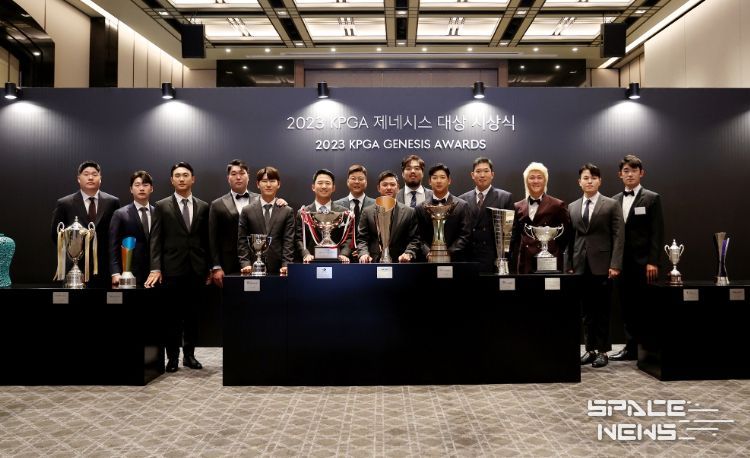 스페이스뉴스 스페이스뉴스 기자 | 27일 서울 용산구 소재 그랜드하얏트 서울 그랜드볼룸에서 2023 시즌 KPGA 코리안투어의 피날레를 장식하는 자리인 ‘2023 KPGA 제네시스 대상 시상식’ 행사를 앞두고 포토콜이 진행됐다.