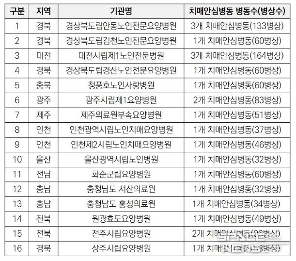 치매환자 전용병동에 치매환자 특성을 고려한 시설·장비를 갖추고, 치매 치료·관리에 전문성이 있어 질 높은 의료서비스를 제공할 수 있는 신경과, 정신건강의학과 전문의 등 의사인력과 전담 간호인력을 배치하고 있는 의료기관