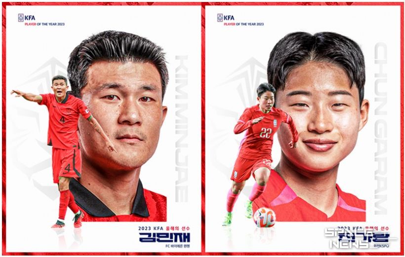 스페이스뉴스 스페이스뉴스 기자 | 김민재(28, 바이에른 뮌헨)와 천가람(22, 화천KSPO)이 2023년 ‘대한축구협회 올해의 선수’로 선정됐다.