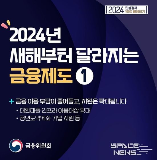 스페이스뉴스 스페이스뉴스 기자 | 2024년 새해부터 달라지는 금융제도 '1'
