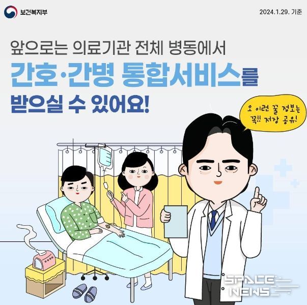 스페이스뉴스 스페이스뉴스 기자 | 앞으로는 의료기관 전체 병동에서 간호·간병 통합서비스를 받으실 수 있어요!