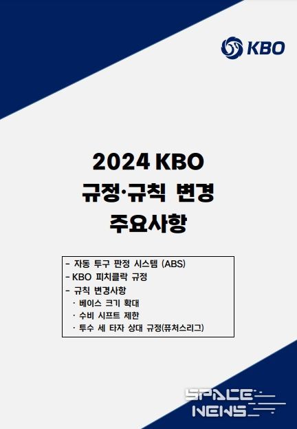 스페이스뉴스 스페이스뉴스 기자 | KBO(총재 허구연)는 2024 시즌 주요 규정, 규칙 변경사항을 담은 안내자료를 10개 구단에 배포했다.