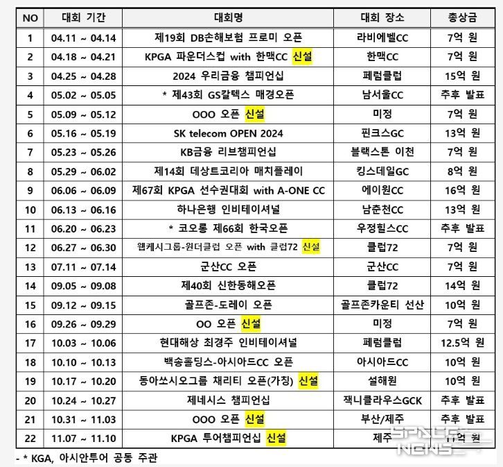 스페이스뉴스 스페이스뉴스 기자 | 2024 시즌 KPGA TOUR 일정이 발표됐다.