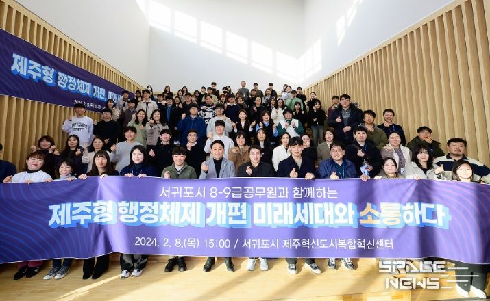 스페이스뉴스 스페이스뉴스 기자 | 서귀포시는 8일 오후 서귀포시 제주혁신도시복합혁신센터 내 북카페에서 MZ세대 공무원 및 서귀포시 청년정책협의체 위원 등 100여명이 참석한 가운데 제주형 행정체제 개편 관련 소통의 시간을 가졌다.