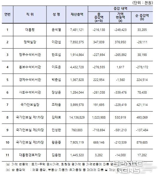 재산공개 내역은 이날 0시 이후 공직윤리시스템(peti.go.kr) 및 대한민국 전자관보 누리집(gwanbo.go.kr)을 통해 공개된다.