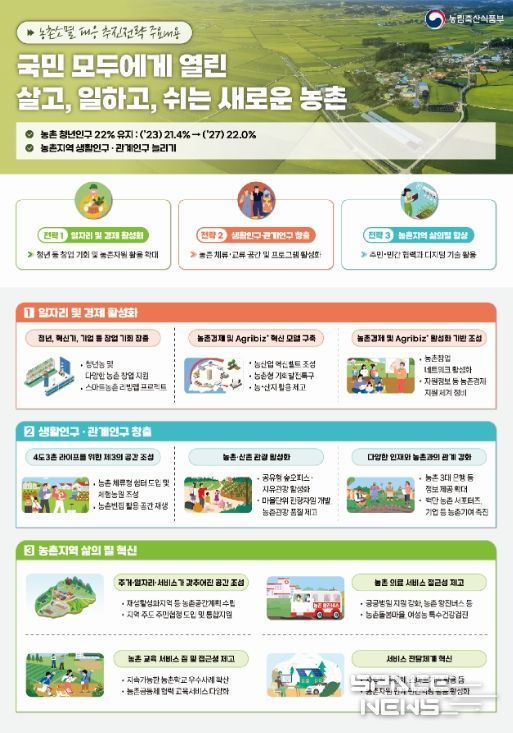 스페이스뉴스 스페이스뉴스 기자 | 농림축산식품부는 농촌소멸 대응과 농업·농촌의 새로운 발전 전기 마련을 위해 ‘새로운 농촌(New Ruralism 2024) 패러다임에 따른 농촌소멸 대응 추진전략’을 발표했다.