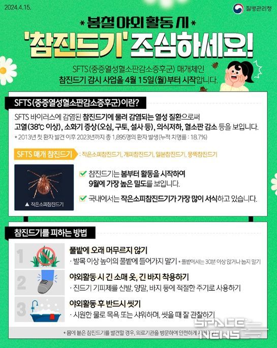 스페이스뉴스 스페이스뉴스 기자 | 봄철 야외활동 시 ‘참진드기’ 조심하세요!