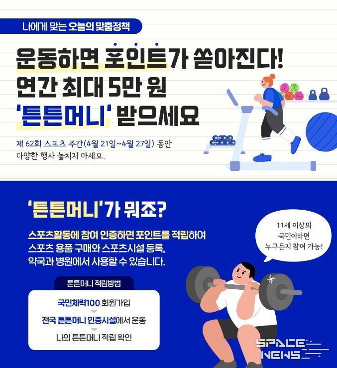 스페이스뉴스 스페이스뉴스 기자 | “제 62회 스포츠 주간(4월 21일~27일) 동안 다양한 행사 놓치지 마세요”