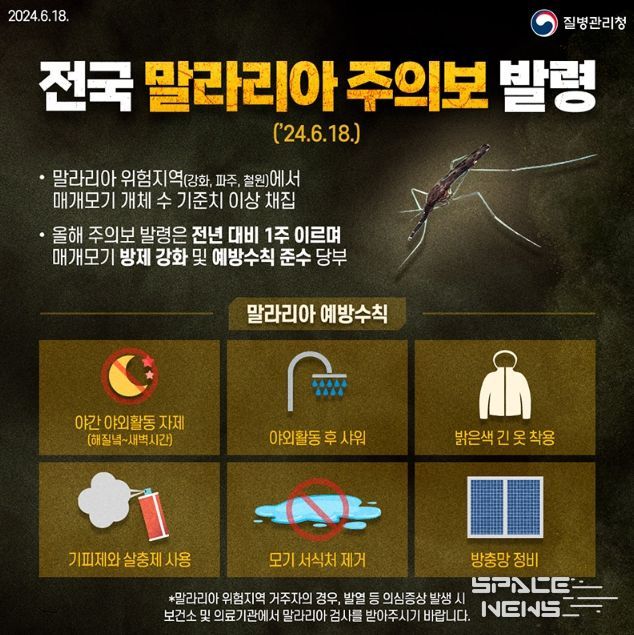 스페이스뉴스 스페이스뉴스 기자 | - 전국 ‘말라리아 주의보’ 발령(’24.6.18.~)