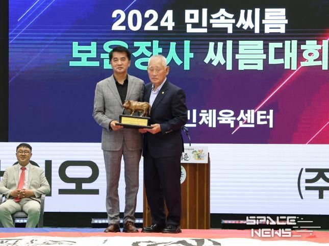 스페이스뉴스 스페이스뉴스 기자 | 보은군은 지난 9일 보은국민체육센터에서 7월 8일부터 12일까지 열리는 ‘2024 민속씨름 보은장사씨름대회’ 개막식에서 최재형 보은군수 및 최부림 전 보은군의회의장이 대한씨름협회로부터 ‘감사패’를 수상했다고 밝혔다.