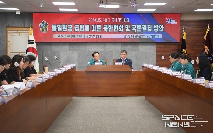 스페이스뉴스 스페이스뉴스 기자 | 민주평화통일자문회의 오산시협의회는 20일 오산시청 상황실에서 2024년 3분기 정기회의 및 통일의견수렴 회의를 개최했다.