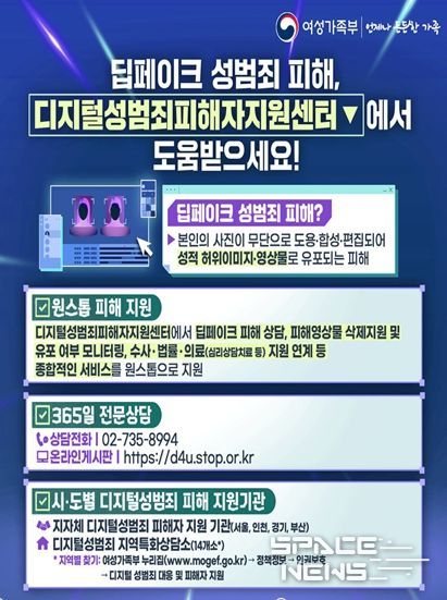 스페이스뉴스 스페이스뉴스 기자 | 경상북도는 최근 이미지 합성 기술(딥페이크)을 활용한 성적 영상물 확산 문제가 심각한 사회문제로 떠오름에 따라 피해 상담 및 피해자 지원 서비스를 강화한다.
