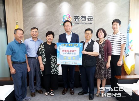 스페이스뉴스 스페이스뉴스 기자 | 봉사단체 은혜회는 8월 29일 홍천군청을 방문, 관내 가정위탁아동 등 저소득계층 45가구에 400만원 상당의 생필품을 전달했다.