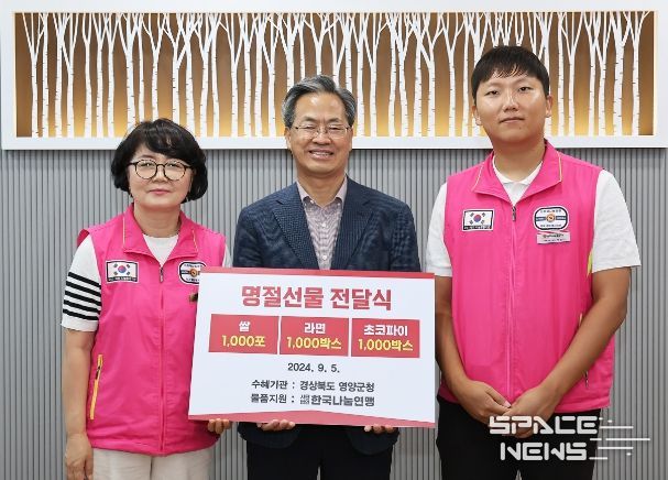 스페이스뉴스 스페이스뉴스 기자 | (사)한국나눔연맹은 5일 영양군의 저소득 취약계층 지원을 위해 5,600만 원 상당의 물품을 기탁하여 따듯한 마음을 전했다.