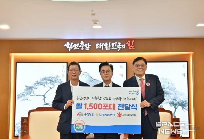 스페이스뉴스 스페이스뉴스 기자 | 충남도는 11일 도청 외부접견실에서 김태흠 지사와 윤해진 엔에이치(NH)농협생명 대표이사, 정태영 세이브더칠드런 총장 등이 참석한 가운데, 도내 아동복지시설 지원을 위한 쌀 전달식을 개최했다.