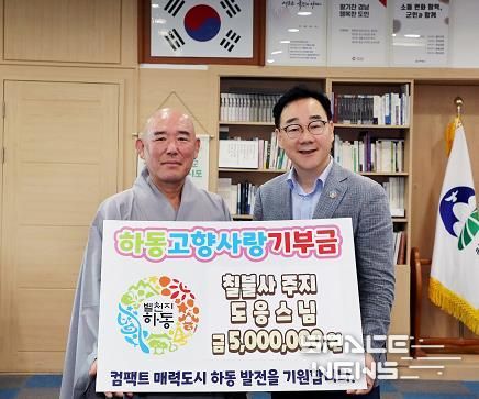 스페이스뉴스 스페이스뉴스 기자 | 하동군은 지난 11일 칠불사 주지 도응스님이 하동군의 발전을 기원하며 고향사랑기부금을 5백만 원을 전달했다고 밝혔다.