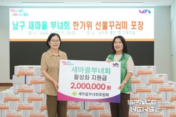 스페이스뉴스 스페이스뉴스 기자 | 부산 남구 새마을부녀회(회장 황용자)는 다가오는 추석을 맞아 9월 11일 남구청에서 소외계층 분들이 따뜻한 추석 분위기를 느낄 수 있도록 '한가위 사랑의 선물꾸러미 나눔 행사'를 열었다.
