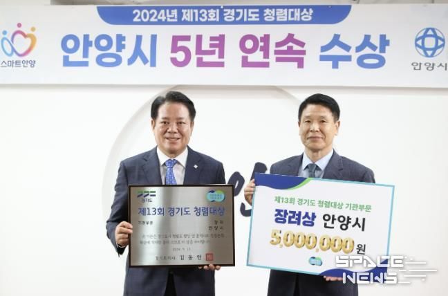 스페이스뉴스 스페이스뉴스 기자 | 안양시가 ‘2024년 제13회 경기도 청렴대상’에서 장려상을 수상했다고 19일 밝혔다.