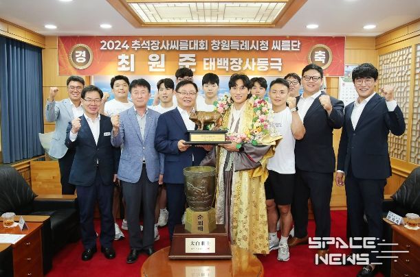 스페이스뉴스 스페이스뉴스 기자 | 창원특례시는 시청 접견실에서 창원특례시청 씨름단 최원준 선수의 ‘위더스제약 2024 추석장사씨름대회’ 생애 첫 태백급 장사 등극을 기념하는 봉납식을 개최했다고 20일 밝혔다.