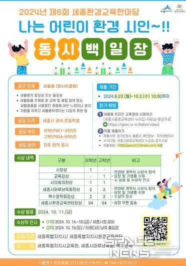 한편, 세종시가 주최하고 세종시환경교육센터가 주관하는 제6회 세종환경교육한마당은 내달 18∼19일 이응다리 남측광장과 세종시청 대회의실 등에서 개최된다.