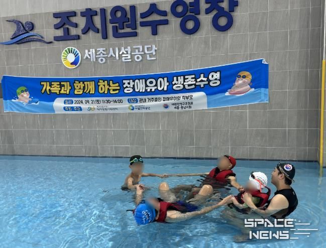 스페이스뉴스 스페이스뉴스 기자 | 세종특별자치시육아종합지원센터는 9월 21일 조치원복합커뮤니티센터 내 수영장에서 관내 거주 중인 장애유아 6, 7세(2019-2018년생)와 학부모를 대상으로‘가족과 함께하는 장애유아 생존수영’프로그램을 실시했다고 밝혔다.
