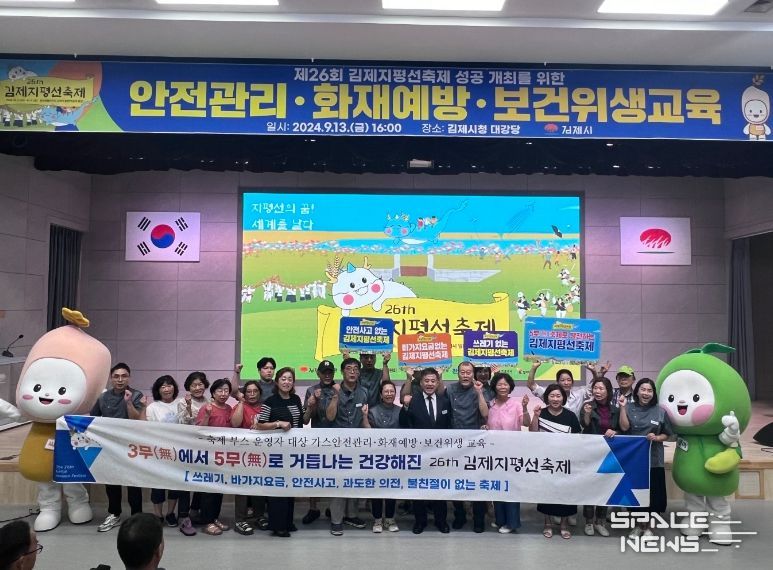 또한 지난 13일 부스 운영자를 대상으로 가스안전관리ㆍ화재예방ㆍ보건위생 교육을 진행했다. 그리고 교육과 함께 제26회 김제지평선축제가 성공적인 5無 축제가 될 수 있도록 일회용품 사용과 쓰레기 발생을 최소화할 것, 음식 가격과 체험비 등 각종 비용을 합리적으로 책정할 것, 교육받은 안전 관련 내용을 숙지하고 실천할 것, 방문객들을 친절히 응대할 것을 함께 선서하며 다짐하는 시간을 가졌다.