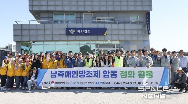 스페이스뉴스 스페이스뉴스 기자 | 인천시 중구는 지난 24일 인천국제공항공사, 지역주민들과 함께 영종국제도시 남측해안방조제 일대(운서동 2854-5 일원)에서 ‘민관 합동 환경정화 활동’을 전개했다.