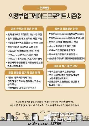 스페이스뉴스 스페이스뉴스 기자 | 의정부시는 시민들의 삶의 환경을 한 단계 개선하기 위한 ‘의정부 업그레이드 프로젝트’의 시즌2 민락편을 27일 발표했다.