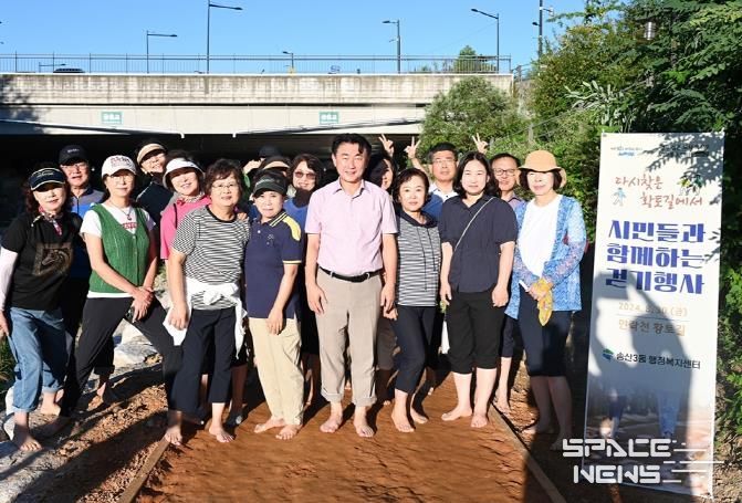 지난해 조성한 민락천 황톳길(제1인도교~제2인도교)에 대한 시민들의 뜨거운 호응에 힘입어, 올 6월 궁촌교까지 황톳길을 추가로 연장해 총 700m 길이의 황톳길을 완성했다. 이제 주민들은 더욱 긴 황톳길을 걸으며 자연과 교감하는 시간을 가질 수 있다.