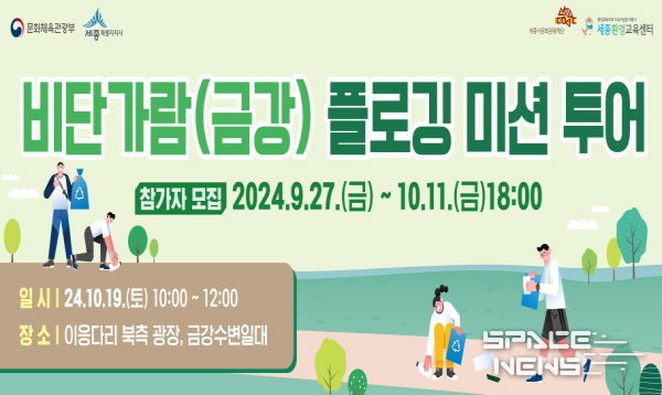스페이스뉴스 스페이스뉴스 기자 | 세종시문화관광재단은 서부내륙권 관광진흥사업의 일환으로 탄소중립 활성화를 위한 ‘금강 플로깅 미션 투어’ 참가자를 10월 11일까지 모집한다.