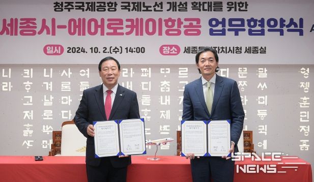 스페이스뉴스 스페이스뉴스 기자 | 세종시와 에어로케이항공㈜이 시민들의 청주공항 이용 편의를 높이고 중부권 거점 공항인 청주공항의 발전을 위해 협력한다.
