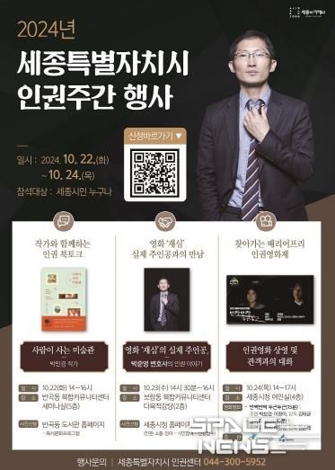 스페이스뉴스 스페이스뉴스 기자 | 세종특별자치시가 오는 22일부터 24일까지 시청과 반곡동·보람동 복합커뮤니티센터에서 2024년 세종시 인권주간 행사를 연다.