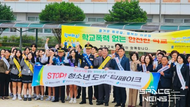 스페이스뉴스 스페이스뉴스 기자 | 충청북도교육청은 8일 아침, 충북경찰청과 청소년 사이버범죄 예방을 위한 합동 캠페인을 주성중학교에서 진행했다
