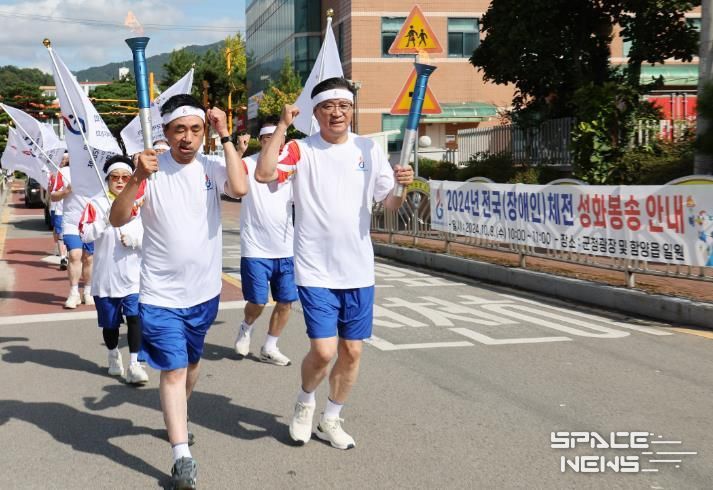 스페이스뉴스 스페이스뉴스 기자 | 함양군은 9일 함양군청 광장에서 2024년 전국체전 및 전국장애인체전의 성공적인 개최와 참여 선수들을 응원하는 ‘성화 봉송 환영식’을 가졌다.