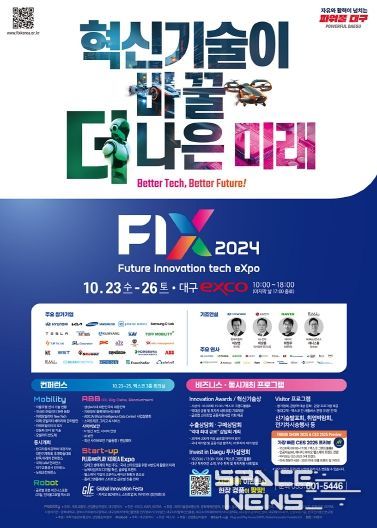 스페이스뉴스 스페이스뉴스 기자 | 대구광역시는 미래를 바꿀 혁신기술을 한눈에 확인할 수 있는 ‘2024 미래혁신기술박람회’를 오는 10월 23일부터 26까지 4일간 대구 엑스코 전관에서 개최한다.