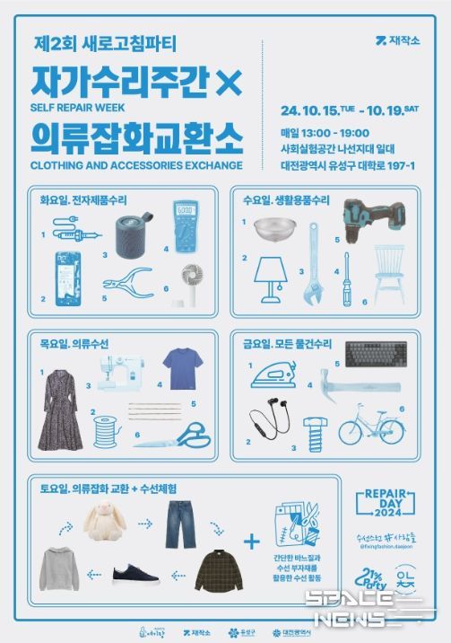 또한 ‘여기랑’에서 19일까지 진행되는 새로고침파티에서는 지역 환경 프로그램인‘수리워크숍’을 운영해 물건의 가치를 되돌아보고 오래 쓰자는 마음을 담아 청년활동커뮤니티와 함께 어은동 안녕축제와 연계하여 의류 교환 및 수선체험, 참여선물 증정 등 다양한 이벤트를 진행할 예정이다.