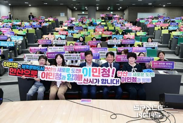 ‘안산시 교육투자’라는 주제로 강의에 나선 이민근 시장은 ▲안산시 교육의 비전 ▲과학고·영재고 유치 의미 ▲안산시 주요 정책 등에 대해 설명하고 함께 공유했다. 강의 후에는 참가자 모두가 피켓과 손 현수막 등을 통해 ‘이민청의 안산시 유치’를 기원하는 마음을 담아 표현하는 시간도 가졌다.