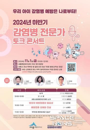 스페이스뉴스 스페이스뉴스 기자 | 세종특별자치시 감염병관리지원단이 내달 1일 오전 10시 새롬종합복지센터 지하 1층 대강당에서 ‘2024년 하반기 감염병 전문가 토크 콘서트’를 연다.