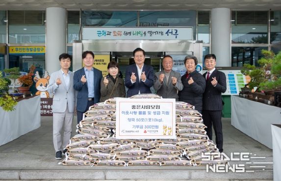 스페이스뉴스 스페이스뉴스 기자 | 인천 서구는 10월 22일, 좋은사람모임으로부터 이웃돕기 성금 300만원 및 양곡 50포(1포당10kg)을 전달받았다.
