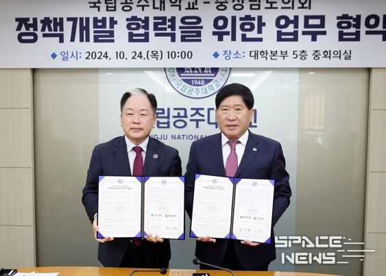 스페이스뉴스 스페이스뉴스 기자 | 충남도의회는 24일 도내 유일의 국립대학교인 공주대학교와 정책연구 등 활발한 정책 협력체계 구축 및 상호협력 강화를 위한 ‘충청남도의회-공주대학교 정책연구협력 협약(MOU)’을 체결했다.