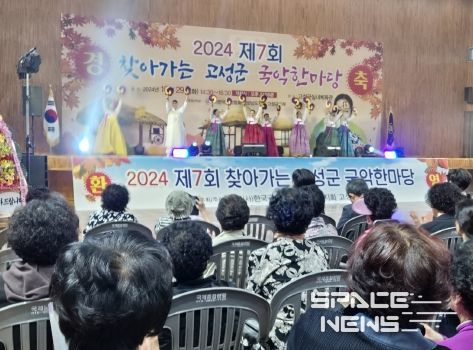스페이스뉴스 스페이스뉴스 기자 | (사)한국국악협회 고성군지부는 전통예술의 저변확대를 위해 29일 오후 2시 30분부터 2시간 동안 고성군 실내체육관에서 국악예술인, 군민 등 400여명이 참석한 가운데 박애리 명창 및 진도북놀이공연단 등 8개 프로그램으로 2024년 제7회 찾아가는 고성군 국악한마당을 성황리에 개최했다.