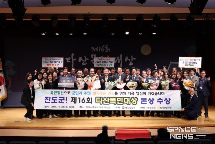 스페이스뉴스 스페이스뉴스 기자 | 진도군이 제16회 다산목민대상에서 본상을 받았다고 밝혔다. 10월 30일에 정부서울청사에서 개최된 시상식에서 본상(행정안전부 장관상)을 받고, 특별교부세 7,500만 원과 상금 1,000만 원을 받았다.