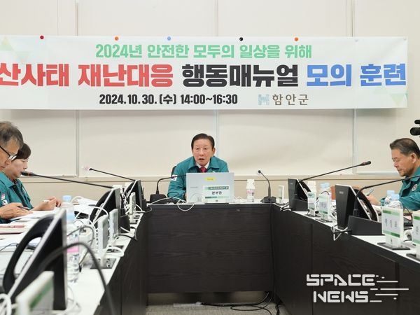 스페이스뉴스 스페이스뉴스 기자 | 함안군은 지난 30일 함안군 재난상황실에서 산사태 발생 시 군 및 유관기관, 민간단체가 합동으로 신속히 대처하기 위한 ‘2024년 재난대응 행동매뉴얼 모의훈련’을 실시했다.