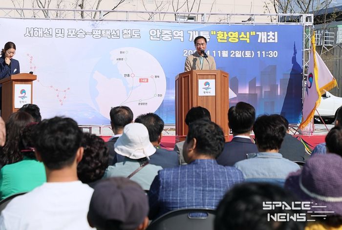 스페이스뉴스 스페이스뉴스 기자 | 평택시는 2일 서해선과 평택선 개통을 맞아 안중역에서 환영식을 개최했다.