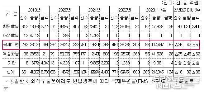 또한, 손승현 우정사업본부장은 “국제우편을 통한 마약류 등 불법물품 반입 차단에 관세청과 함께 노력하겠다.”라며 “관세청과의 협력을 바탕으로 국민이 불편함 없이 우편서비스를 이용할 수 있도록 최선을 다하겠다.” 고 밝혔다.