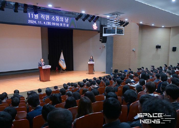 스페이스뉴스 스페이스뉴스 기자 | 최민호 세종특별자치시장이 4일 시청 여민실에서 열린 11월 직원 소통의 날에 참석해 전국적으로 재정이 어려운 상황이지만 도시의 미래를 위한 사업은 반드시 해내야 한다고 역설했다.