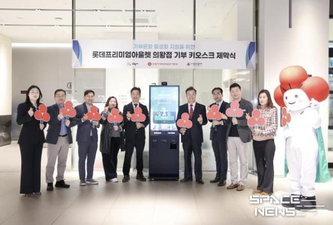 스페이스뉴스 스페이스뉴스 기자 | 의왕시는 7일 롯데프리미엄아울렛 의왕점에서 지역 상생을 위한 기부 키오스크 운영 협약식 및 제막식을 가졌다고 8일 밝혔다.