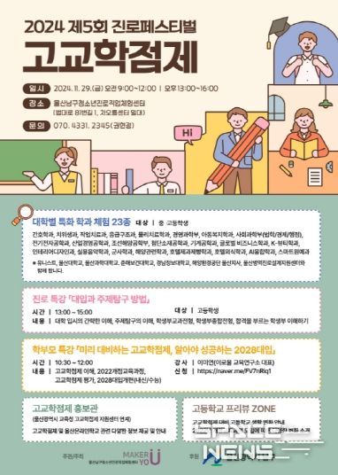 스페이스뉴스 스페이스뉴스 기자 | 울산 남구는 오는 29일 청소년차오름센터에서 남구진로직업체험센터(센터장 박혜진) 주관으로 ‘2024년 제5회 청소년진로페스티벌 고교학점제’를 개최한다고 밝혔다.